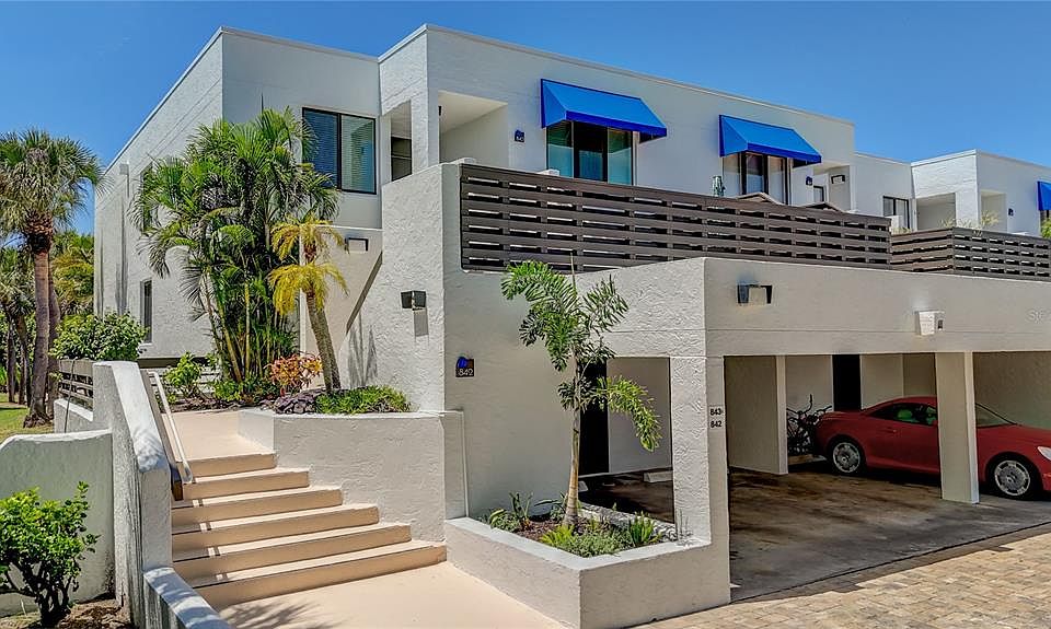 Welcome to your island sanctuary. This corner condo is comfortably furnished and well appointed for carefree enjoyment. A spacious dining and living area opens out to a screened lanai and large outdoor patio overlooking landscaped grounds. There is a gas grill for al fresco meals and a patio gate out to the grounds. The primary bedroom has a king bed, ensuite bath, large walk-in closet, and an alcove with a desk overlooking the garden. The guest bedroom can be configured as a king or two twins. The eat-in kitchen is fully equipped with everything you need for easy meal preparation. There is covered parking for one car, outside locked storage and plenty of guest parking. Bayport Beach and Tennis Club is a true Gulf to Bay community, with a fishing pier and kayak launch out to Sarasota Bay, and access to 1200 feet of private beach with beach chairs and umbrellas, just 2-3 minutes from your front door. Enjoy a swim in the heated Jr olympic pool, tennis on 4 har-tru courts, a club house with full kitchen, fitness room, and shelled walking paths along tropical landscaped grounds. Groceries, parks and conveniences are within 2 miles, with shopping and terrific dining dotted along the Key. Sarasota's entertainment and cultural attractions are a short drive away. Available with a 3 month minimum January through April, at $7500 per month and May through November at $4500.00 per month. Rentals under 6 months are plus 13% tax. Special pricing for longer stays. May also be rented annually.