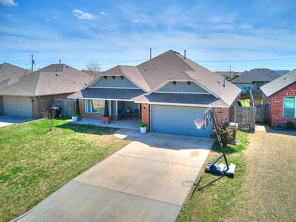 Tucked away in the heart of Moore this craftsman accented home offers the perfect blend of comfort, convenience, and style. Just a short walk to Plaza Towers Elementary and the popular Little River Park with its splash pad and trails. This home is ideal for so many with thoughtfully designed living space featuring a split floor plan, high ceilings, and abundant natural light. The cozy living room is carpeted for comfort and anchored by a charming fireplace, while the kitchen shines with granite countertops, stainless steel appliances, painted cabinetry, a pantry, and a center island perfect for meal prep. Enjoy the outdoors year-round on the covered front porch or back patio with plenty of room to relax or play. Additional features include an attached 2-car garage, an in-ground storm shelter for peace of mind. This one checks all the boxes — great layout, modern finishes, and an unbeatable location. Schedule your showing today!