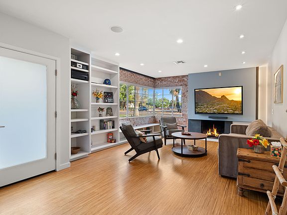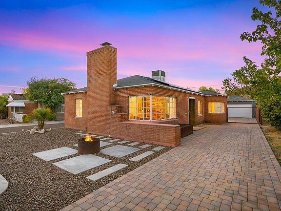 Located in the Phoenix Historic District, this 1941 residence offers a perfect blend of classic charm and contemporary upgrades. The bright, open floor plan features rich wood flooring, LED recessed lighting, and oversized windows that invite abundant natural light. The great room, complete with a gas fireplace, seamlessly connects to an upgraded kitchen boasting Thermador appliances, a white tile backsplash, and generous storage. A formal dining area and eat-in kitchen provide elegant spaces for dining and entertaining. The outdoor area includes a landscaped front and back yard, a tranquil patio, and a spacious side lot ideal for pets. Ideally positioned near a park and close to Phoenix Country Club, Sky Harbor Airport, Fashion Square Mall, dining, golfing, and major freeways. This home also includes a two-car garage and additional slab parking, making it an exceptional choice for those seeking a blend of historic character and modern amenities.