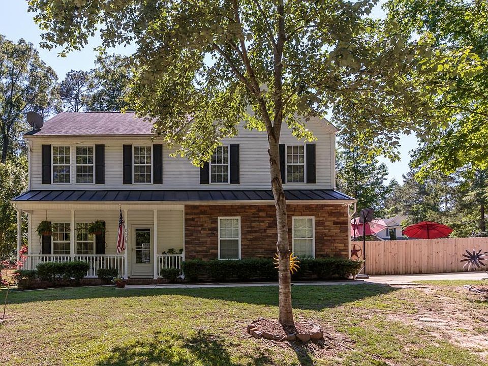 Simply perfect family residence w/in the Gated & Beautiful Woodlake Country Club, NC. Conveniently located near Ft. Bragg & Pope, Sanford and the towns of Southern Pines and Pinehurst. Situated on a large corner lot and cul-de-sac away from traffic. A family oriented neighborhood with similar newer homes. Its roomy 4 Bedroom plan includes a large Master Suite, 3 guest Bedrooms, full Bath, and Laundry room all conveniently upstairs...giving this Home an open Main Level Floor plan and great Space. The Open Concept on main level offers a large Living Room to Kitchen area. Recently updated gourmet kitchen has rich cabinetry and finishes. The formal Dining room and a half bath completes this level. The fenced in back yard is a homeowners dream with a 36x16 built-in pool, patios and fire pit