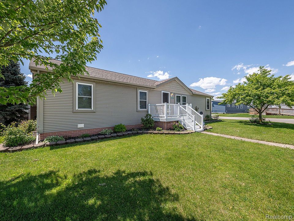 Discover comfort and convenience in this beautifully maintained, move-in ready 3-bedroom, 2-bath home, perfectly situated on a spacious and well landscaped corner lot. With 1,500 sq ft of living space and cathedral ceilings in the expansive 430 sq ft living room, this home offers an airy, open layout that feels both inviting and spacious. The heart of the home features a bright, eat-in kitchen enhanced by brand new sun tunnels that flood the space with natural light. It opens directly to the large living area—ideal for entertaining or everyday living. The private master suite features a large walk-in closet, and a spacious primary bath complete with a garden tub and stand-up shower—your own personal retreat. Enjoy the outdoors from your front porch and take advantage of the extended driveway and carport with parking for 4+ vehicles. Additional highlights include a laundry room, a storage shed, and all appliances included (except the refrigerator). Peace of mind comes with recent upgrades: all-new plumbing, new heat tape, full undercarriage coverage, and a furnace and A/C system in great working order and serviced annually. Park Amenities include an in-ground pool, clubhouse, playground, basketball courts, and picnic area. This is a manufactured home In Raisin Ridge Mobile Home Community on a rented lot. Enjoy low-maintenance, resort-style living in a home that truly has it all!