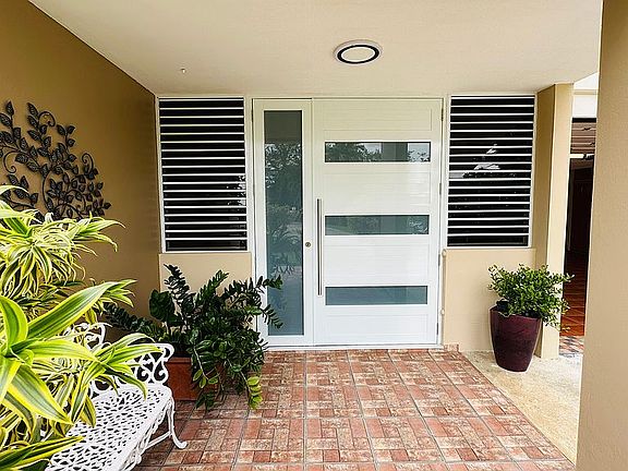 This beautiful home is sitting on nearly an acre lot, fully fenced with a gated entrance, surrounded by banana and plantain trees as well as many other fruit trees, all just 2 minutes from Montehiedra Mall with quick access to highway 52.