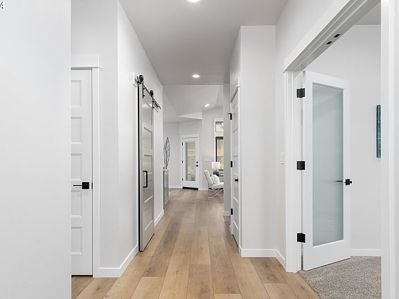 A stunning custom-built home by Anslow & DeGeneault that combines elegance with functionality. This single-level, open-concept design features 3 bedrooms, 2 baths, and a versatile office space. The luxurious master suite is complemented by thoughtfully designed living spaces, including a living room with a cozy gas fireplace. High-end Hunter Douglas Zebra Blinds with motorized controls in the living room and office. High-end finishes and custom kitchen cabinetry add a touch of sophistication throughout. The home boasts energy-efficient features, including a high-efficiency gas furnace, water heater and HE Whirlpool Washer & Dryer. Step outside to enjoy the covered patio, a fenced yard with sprinklers, and Resin garden shed. A fully finished oversized 3-car garage offers wall mounted vacuum, motorized bicycle lift, and Polyurea floor coating professionally installed. A full-length garage door screen keeps the garage cool in the summer. Conveniently located near Autzen Stadium, river trails, shopping, and dining, this property offers both comfort and convenience. Don't miss the opportunity to make this exceptional home yours!
