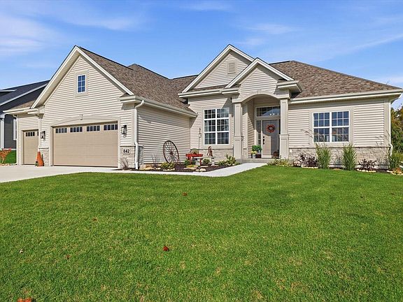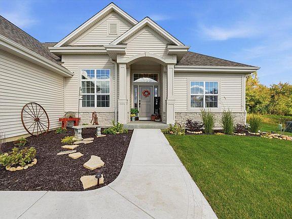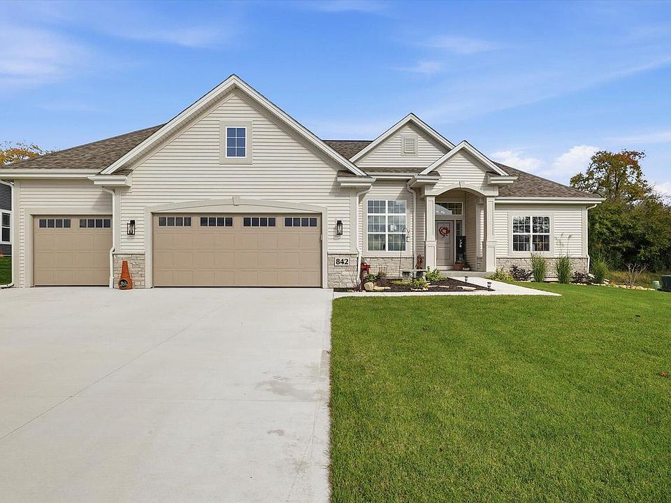 Beautiful split-bedroom ranch featuring 3 bedrooms and 2 baths! Enjoy the open-concept layout with luxury vinyl plank throughout and includes an 11-foot ceiling in the great room, cozy gas fireplace, and den. The kitchen impresses with a large island/snack bar, coffee bar area, maple cabinets with crown molding, and a stylish tile backsplash. Nice size dining room with doors to the patio. Retreat to fabulous tile shower and a double vanity in the primary bath. Tons of windows fill the home with light. Awesome oversized laundry room with mud room. Why wait to build when you can own this like-new, only 2-year-old home! Bonus...gas line installed for the grill.