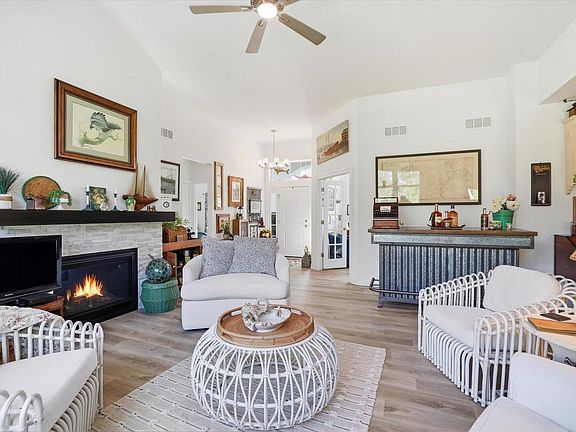 Stylish tile backsplashOversized laundry roomTons of windowsCozy gas fireplaceMud roomOpen-concept layoutCoffee bar area