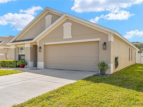 Nestled on a spacious lot in a quiet street on Village of Avalon! This stunning like new Home; offers comfort, Luxury, privacy and well maintained! 3-Bedroom ,2-bathroom, bonus office/den, 2-car garage. As you step inside, you’ll be greeted by soaring vaulted ceilings that enhance the open, airy feel of the formal dining room, eat-in kitchen area and open concept floor plan that feels perfect. In the kitchen you'll find quartz counters, 42'' white wood cabinets, stainless appliances, large pantry,  and plenty of counter space. The Master Bedroom has a spacious with walk-in closet en-suite bathroom with double sinks, walk-in shower. Inside laundry room, large fence-in back yard. The community offers many amenities, community pool, community center, fitness center, playground and sidewalks. Conveniently located close to Tampa, off Suncoast Parkway with low HOA no CDD fees. Why wait for a new build!!! High and dry! NOT in a flood zone.