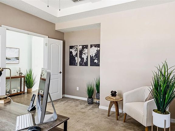 Welcome to this beautiful 4-BED / 2.5-BATH with a front yard view that cannot be beat within the highly desirable Reserve at Minneola. This well maintained ONE-OWNER home is ready to welcome its new owner. Immediately within the front entry is a home-office/den situated for maximum privacy. The balance of the first floor comprises an open ‘GREAT ROOM’ floorplan which combines the kitchen, dining and living rooms into an oversized gathering space. White kitchen cabinetry with 42” upper cabinets, stylish GRANITE countertops, a large breakfast bar and WALK-IN PANTRY make this kitchen the envy of the neighbors. A delightful (FULLY-FENCED) backyard “Food Forest” provides a yard-to-table experience with everything the family chef requires to prepare gourmet meals nightly. Upstairs awaits an OVERSIZED PRIMARY bedroom with tray ceiling with coffer detailing. The en-suite bath offers double sink vanity, SOAKING TUB and large WALK-IN SHOWER with seamless glass and a MASSIVE WALK-IN CLOSET. Three large guest bedrooms and a secondary bath with DUAL SINKS provides comfort and privacy for all! BRAND NEW IN 2024: A COMPLETE HVAC SYSTEM (TWO units) and a NEW hot water heater. TWO COMMUNITY POOLS are included within the exceptionally low HOA. Walking distance to Publix, Minneola Athletic Complex, Grassy Lake Elementary and Lake Minneola High School. The Florida Turnpike is within 5 minutes of your front door, providing access to Downtown (30 min.), Orlando International Airport (30 min.), Interstate 75 (30 min.) and area theme parks (25 min.). Schedule your showing and see all this great home has to offer.