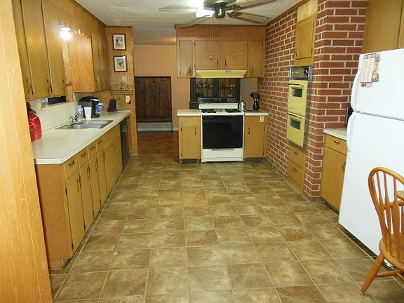 3 Br/1.75 Ba, 2156 SF, Brick home with metal roof, living room with fireplace, den with wood burning stove. Like new windows, ceramic & wood flooring. Mud room with shower. On 4.65 Acres, Motor home/camper garage, plus shop with double garage doors. Lots of fruit trees.