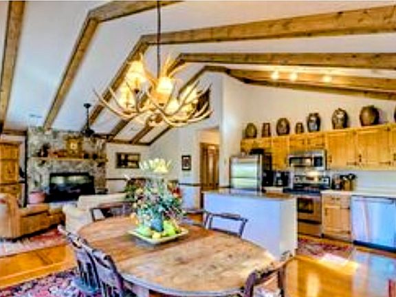 Charming Bavarian-style chalet featuring stunning views in the golf course community of Sky Valley, GA. This beautiful home has 4 bedrooms and 3.5 bathrooms. The living room showcases vaulted ceilings with exposed beams and a magnificent rock fireplace. Glass garden doors lead to back decks, perfect for soaking in the scenery. Enjoy fresh mountain breezes and the soothing sounds of a nearby waterfall.