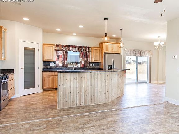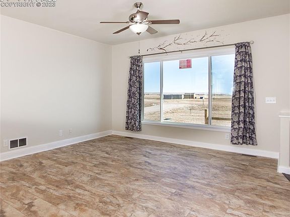 Embrace the charm of rural living in this 2019-built home with a new roof, updated windows, and fresh flooring, situated on a 2.5-acre parcel in Viewpoint Estates. Inside, the newly installed vinyl flooring seamlessly connects the living room, dining room, kitchen, and family room. The spacious kitchen features a breakfast bar, gas stove, and captivating views of Pikes Peak. The master bedroom provides a luxurious en-suite bath with a soaking tub, a roomy walk-in closet, and a private water closet. The dining area opens to a stamped patio with picturesque Pikes Peak views. The large family room, equipped with a gas fireplace, adds warmth and comfort. Loaded with features, the residence comprises four bedrooms and two baths, including a laundry room with a washing sink and a clothes-drying bar. Complete with a three-car garage, all kitchen appliances, and window coverings, this home invites you to relish the tranquility of country living and all the nightly stargazing you can take in a lifetime!