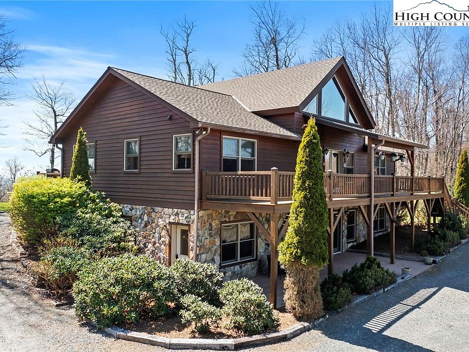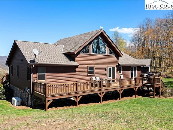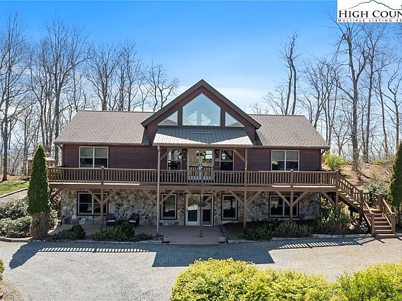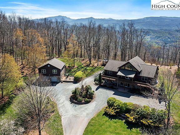 Stunning Home perched above Boone, NC with Long Range Views as far as the eyes can see! So many possibilities, offering multiple living spaces! Meander up your private drive to the Custom Built 4 Bedroom, 3 Bath home in a beautiful, private setting! Luxury features abound such as a Main floor Cathedral Ceiling adorned with beautiful wood beams, Custom cabinetry, Solid wood Built-ins on both floors, Radiant Heat Flooring, Hot water on demand, etc. Open concept Living Room/ Dining Room/ Kitchen plus Primary En-suite bathroom and 2 more bedrooms and a bath on the main floor. Downstairs boasts a recreation room, 4th bedroom/bath, and a second kitchen! Area where pool table currently sits would make an excellent dining room , creating a full 1 bedroom living space with it's own entrance downstairs. Lots of extra storage space is available in the detached, oversized, 2-car garage and a separate apartment, complete with its' own kitchen and laundry sits above the garage! Think separate office, rental, mother-in-law space as only a few of the many possibilities for this space. This 5.6 (2 lots combined) acre property is adorned with beautiful landscaping including apple trees and native flowers and flora. Sit by the fire at night while taking in the glorious long-range mountain view or enjoy your morning cup of coffee from the gazebo. A long driveway leads to complete privacy with views in every direction, yet so close to the Town of Boone! This home on just 4 acres also available for sale (mls #249368) but the adjoining 1.6 acre lot adds a great buffer and additional home site! Fantastic video available with this listing and excellent rental projection included in docs! This is the sublime mountain property you've been waiting for!