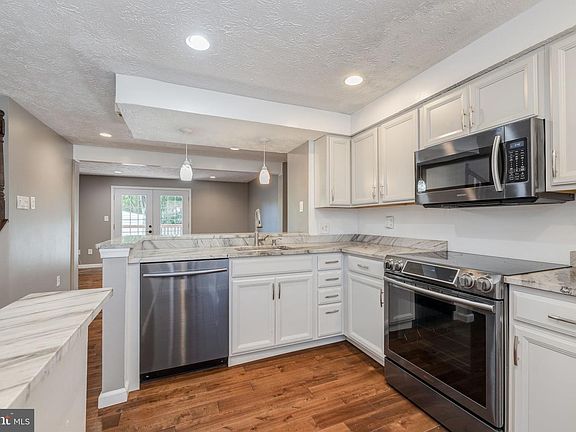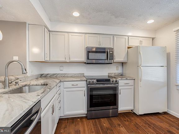 Welcome to 8420 Lazy Creek Court, an end-unit Pepperwood model backing to trees with an extended side yard in Springfield's Newington Forest. You'll find great wide-plank hardwood floors on all three levels. The windows were new in 2021. There are granite counters in the kitchen along with black stainless stove, microwave and dishwasher, recessed lighting and an overhang with pendants for barstool seating. Walk out from the living room to the deck and brick patio and enjoy the fully-fenced backyard with trees beyond. There's a shed too for good storage options. The owner's suite has a nice closet area and the full bath has a jetted tub. The walk-up lower level features the rec room, a fun wet-bar with white cabinetry and a full bath. This terrific home is located super-close to the Fairfax County Parkway, I-95, multiple parks and more! Newington Forest offers tons of amenities like the pool, sports courts, walking trails and playground.