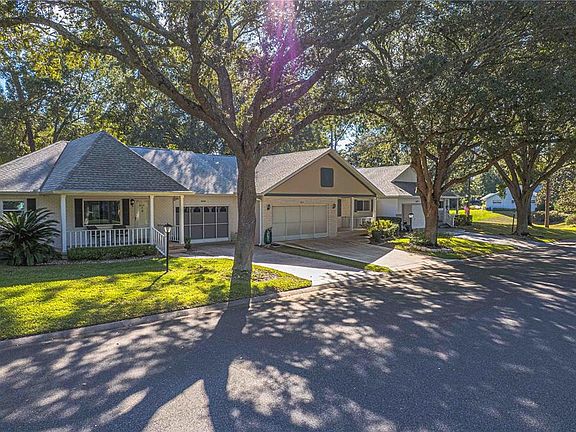 One or more photo(s) has been virtually staged. Welcome to this charming Bostonian Villa nestled on a quiet road near the front of OTOW. This 2 bedroom, 2 bath home offers an inviting and easy-living layout with a spacious kitchen perfect for cooking, casual meals, or hosting friends. Enjoy your morning coffee in peace on the front porch, overlooking the park, and unwind after a day of golf or community activities while grilling and gathering on the extended concrete and paver patio. A bonus room off the back of the home provides flexible space-currently used as an office, but ideal for crafting, fitness, or a cozy reading lounge. Mature shade trees enhance the outdoor setting and add a sense of privacy and comfort. The 2 car garage provides plenty of storage for golf clubs, hobby supplies, or seasonal decor. Here you are surrounded by friendly neighbors and an abundance of amenities to enjoy-golf, fitness centers, pools, clubs, walking paths and more. Experience the lifestyle that On Top Of The World is known for: relaxed, active, and community-centered living. HVAC 2020, ROOF 2020, Windows 2009, 2023 Heat Pump, Exterior was painted 2016. GUEST BEDROOM HAS A MURPHY BED. WATER FILTER FOR DRINKING WATER - IS CONNECTED TO REFRIGERATOR FOR ICE. (UNDER SINK IN KITCHEN)