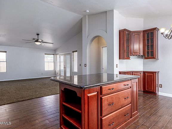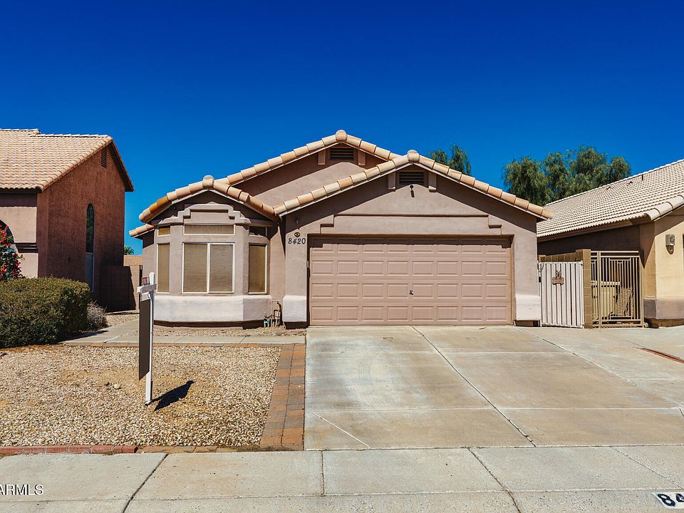 No HOA! Discover the charm of North Peoria living in this freshly painted 4-bed, 2-bath home offering 1,521 sf of inviting space. Vaulted ceilings enhance the natural light in the great room and kitchen, where custom cabinetry, granite counters, coffee bar and an island make entertaining effortless. Step thru French doors to a covered tile patio overlooking a sparkling pebble-tech pool with rock fountain, desert landscaping, and privacy—your own backyard retreat. The main suite features wood shutters, walk-in closet, and remodeled bath w/ extended counters and tiled shower. 3 additional bedrooms provide room to grow. New AC (2025). Located near A-rated schools, parks, trails, Loop 101, and shopping, it blends comfort and convenience.