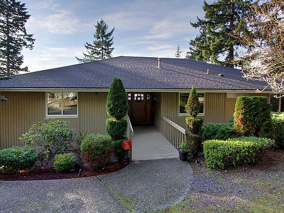 Peaceful View Retreat with Bright Open Spaces defined by a stunning view of Lake Washington and the Olympic Mountains. Fantastic Great room Layout w/ updated Kitchen, Vaulted Ceilings and beautiful Hardwood floors. Upstairs enjoy 3 bedrooms including a main floor Master Suite with a Lake view. The Spacious lower level has an over sized Family Room w/Gas Fireplace, Wet Bar, 2 additional bedrooms, one with an en suite Bath and opens to a generous Patio and huge Level backyard plus Storage Galore