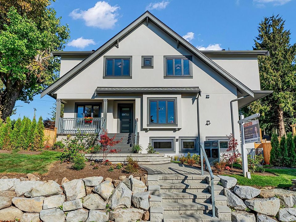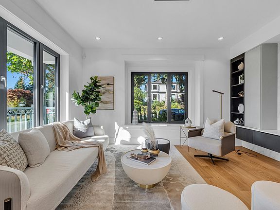 This Stunning Brand new 5 bed, 5 bath home offers over 2,100 sqft of elegant living on a bright corner lot. Designed by VictorEric. Features include white oak floors, radiant heat, A/C, HRV, security system, and EV-ready garage. Gourmet kitchen with Miele & Fisher Paykel appliances, quartz countertops, and custom millwork. Upstairs has 4 bedrooms; basement includes a legal 1-bed suite—perfect mortgage helper. Triple-pane windows, Kohler & Hansgrohe fixtures. Prime location near Arbutus Greenway, Safeway, parks, and golf. Feels like a Luxurious house with beautiful front garden and back private yard. Must see! open house Sat Oct 4 2-4pm, Sun Oct 5 2-4pm.