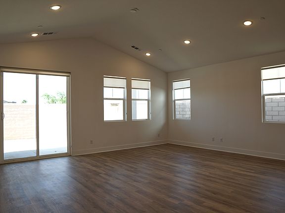Three-bedroom solar home for lease in the gated Aguila community at Terra Lago in North Indio. This modern home offers an open, light-filled floor plan with soaring cathedral ceilings in the great room and an island kitchen featuring stainless steel GE WiFi-enabled appliances and a built-in coffee bar. All windows are fitted with new roller shades for a clean, contemporary look.