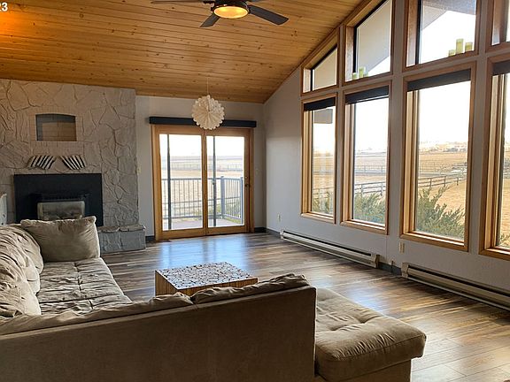 Spacious home with amazing views of mountains and seasonal pond in front yard. Irrigation water rights. Huge shop with office, bathroom, tack room, chicken or small animal areas. Generous storage in both shop and home. Dog kennel, horse runs, horse shelters, pens and pasture. Very safe high tensile electric fencing. Home has beautiful granite kitchen counters, soft close cabinets, heated tile bath floors, quartz counter in baths, Anderson wood frame windows throughout. 2 decks and fenced yard.