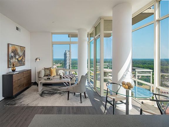 - Exterior features: *Select apartments, 10-Foot Ceilings on Floors 21-25, Chef-Caliber Kitchens, Energy-Star Appliances, Floor-to-Ceiling Windows, Full-Height Pantries with Frosted Glass Doors, Game Room, Green Roof Design, High-speed Internet Ready, LEED Gold, Oversized Resident Storage Units, Package Receiving, Pendant Lighting, Quartz Countertops, Rush Hour Transit Display in Lobby, Spokes Bicycle Repair Station, Stainless-Steel GE Appliances, TV Lounge, Ultra-Modern Wood Cabinets, Wagtime Pet Grooming Salon, Wood-Look Plank Flooring