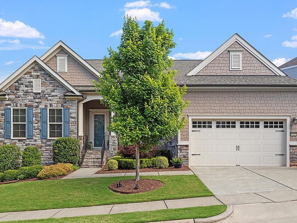 Gorgeous home in awesome location with so many upgrades, off Old Lead Mine Road, .7 mile to Sola and Gonza Tacos, Target & Whole Foods (there are sidewalks too!) 3 Bedrooms on the main level with 3 full baths. One of these main floor bedrooms could be used as an in-law suite or second primary suite. Primary suite has engineered hardwood flooring. Beautiful gourmet kitchen with neutral palate and SS appliances, and pantry. Open floorplan features, dining, eat-in kitchen, large family room with gas fireplace and light and bright sunroom. 2nd floor features bonus room, bedroom, full bath & a large walk-in storage area. Carpeting upstairs replaced 2 years ago, and just cleaned. Enjoy the beautiful NC weather on the sizeable, screened porch, custom deck ($20,000), and enchanting backyard with $18,000 in additional landscaping. Exterior of home painted in March 2024. Deck-stained last summer. Sellers also added attic fan. Home has Energy Efficiency Certificate. Ceiling speakers in Kitchen, Primary Bedroom and Bath, and Upstairs Bonus Room.** Open houses cancelled, due to under contract.