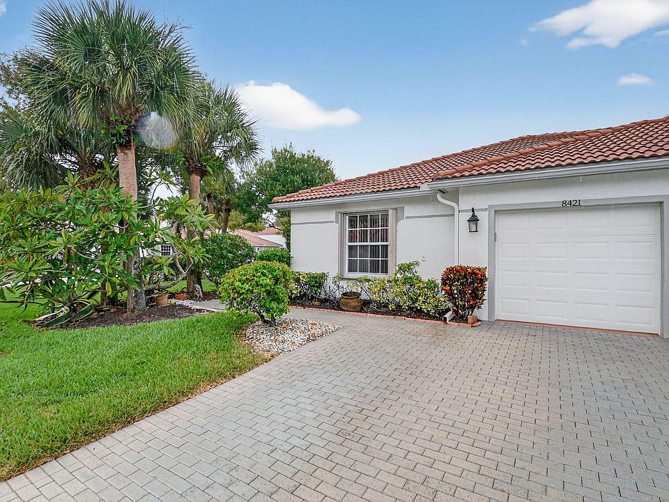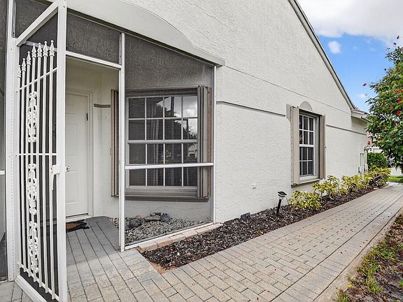 Great opportunity to live in this ''La Casa'' floor plan with a great open spacious feeling surrounded by an open yet private park-like setting in a quiet yet active gated community. This end unit offers extra windows for natural lighting, a screened entrance, a large covered patio & a split plan with high vaulted ceilings , a skylight, updated kitchen & bathrooms, huge pantry, walk in closet & newer a/c. along with 1 car garage & accordion shutters. The Maintenance includes gated entrance, landscaping, exterior painting, cable & internet. Enjoy the newly remodeled two story clubhouse with all of the activities u can hope for along with a full restaurant, bar, arts & crafts, library, fitness center, pools, bocce, tennis, pickleball & more. Vacant & ready to SELL NOW! Bring your offer today