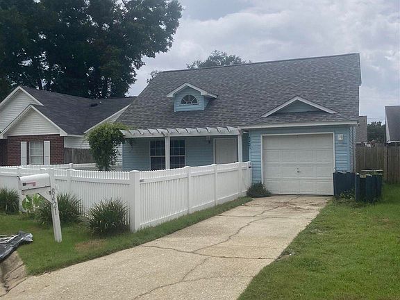 Beautiful Home in Peaceful Cul-de-Sac neighborhood ~ The house with the "White Picket Fences" ~ The front porch is covered by a beautiful Pergola ~ The front Door opens into a Double Vaulted Ceiling in the Living Room with a staircase to the 2nd Floor ~ A large Open Eat-In Kitchen with Double Sinks and Brand New Stainless Steel Appliances, and Butcher Block Counters ~ Double French Doors lead out to the Covered Back Deck ~ The First Bedroom is on the main level along with a separate Bathroom with and a Tub/Shower combo ~ Up the Stairs are two other bedrooms, both of which have Windows that overlook the backyard ~ The Master Bedroom has a large Walk-in Closet connected to the Bathroom with a Garden Tub ~ The Backyard has a Yard Shed along with a Beautiful Covered Deck, Landscaping, and a Two Person Bench Swing ~ One Car Garage ~ and Many Upgrades, like New Roof, June 2022, New Flooring, July 2022, Newer Water Heater, NEW Paint throughout, and CH&A in 2017 ~ excellent North East Location, only minutes from I-10, Hospitals, Malls, UWF and PSC, Military, and Pace/Milton ~ A MUST SEE HOME, A RARE FIND !! Schedule a Tour today.