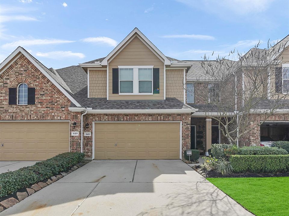 Come home to the gated Retreat at Gleannloch Farms! Immaculate townhome by Brighton Homes! Attractive brick/Hardy exterior with HOA maintained and irrigated front lawn. Attached two car garage! Great floorplan with grand foyer features three spacious bedrooms and a game room/study upstairs. Upgrades include high ceilings and premium flooring. Nest climate control system and included refrigerator! Inviting open concept kitchen with attached breakfast room and gas range has plentiful cabinetry with undermount lighting and features sleek granite counters with tile backsplash. Inviting faux stone accented breakfast bar. The Owner suite with private bath features updated ceramic tile, dual sinks and large soaking tub with separate shower. Lovely fenced backyard with attractive covered flagstone patio. Great location close to shopping, dining and major medical facilities. Zoned to Klein ISD! Call today!
