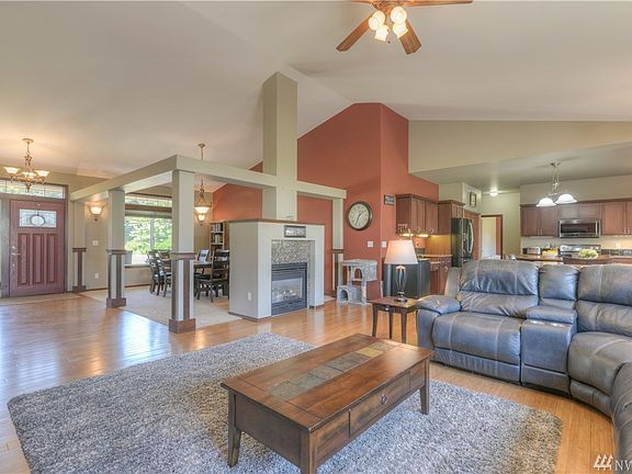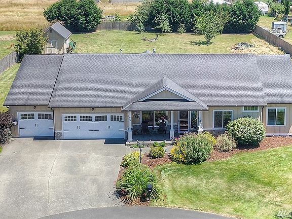 Stunning rambler on level 1± acre parcel on private cul-de-sac. Great room design w/vlted ceilings & large windows create a bright, spacious interior. Chef's kitchen w/solid granite counters, updated SS appliances w/plenty of cabinets & counter space & bamboo flrs. Private master w/gas fireplace, 5 piece bath & walk-in closet. Split bdrm design features 3 bdrm + office. Huge, fenced yard, covered patio, hot tub, fruit trees & shed w/lots of room for shop. Efficient heat pump & private well.