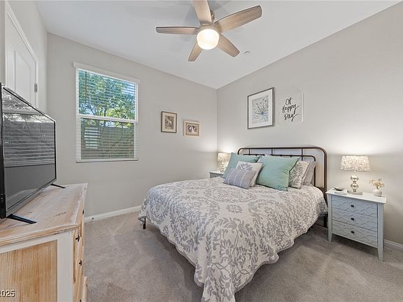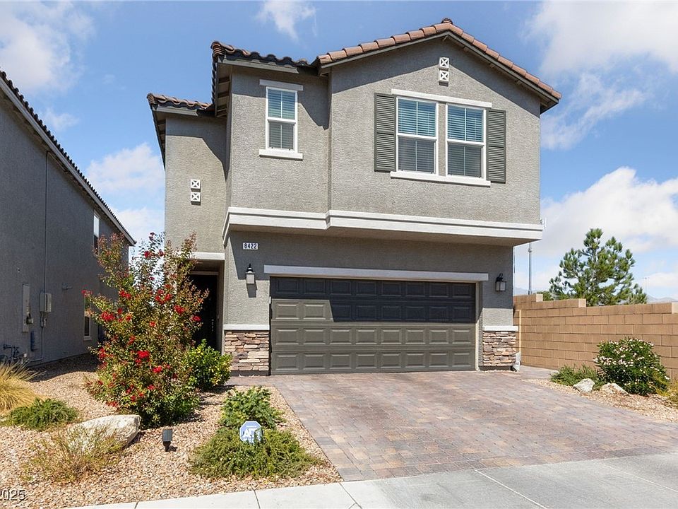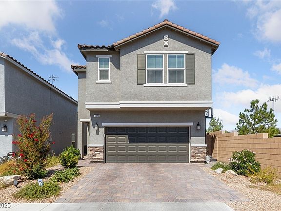 Welcome to this stunning 5-bedroom home in desirable NW Centennial Hills, built in 2021! Nestled in the gated Montecito community, this thoughtfully designed home boasts a bedroom and full bath on the first floor, perfect for a mother-in-law suite. The front of the house showcases the beautiful driveway pavers and front façade. This open-concept floor plan offers a spacious kitchen featuring stainless steel appliances, quartz countertops, tile backsplash, a walk-in pantry, and a large island ideal for entertaining. Enjoy modern comforts, including a tankless water heater, a built-in fire sprinkler system, and a functional loft that separates the large bedrooms and ensures privacy. Light and bright throughout, this home offers privacy with no rear neighbors and is tucked away in a quiet cul-de-sac. Conveniently located near top-rated schools, shopping, restaurants, and parks—this home truly has it all!