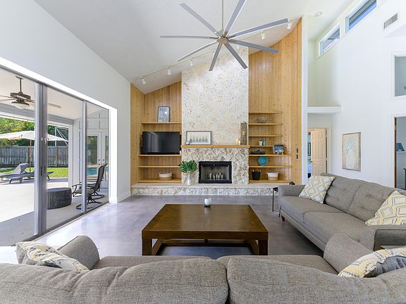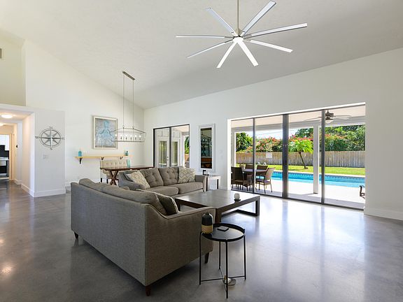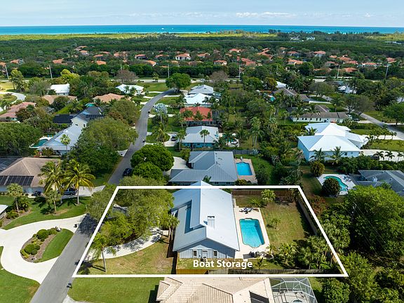 Experience Florida living at its best in this spacious pool home in the highly sought after community of Hobe Sound. Total Sq. Ft. 2,959, Living Sq. Ft. 2,4534 bedroom, 2.5 bath, 2 car garage, Some of the highlights include, New metal roof, Well irrigation, Oversized fully fenced back yard with plenty of room for boat storage, Circular driveway, Beautiful wooden double door entry, Volume ceilings, Ceiling fans Skylight, Polished concrete floors All living areas have pool and yard view. The spacious family room has a coquina stone, wood burning fireplace, built in tongue & groove shelving and sliders to the expansive lanai and pool. Open dining area has chandelier lighting. Kitchen has recessed lighting, wood cabinetry, full tile backsplash, center island, a full steel appliances and sliders to a private front patio. The master bedroom has, walk in closet private entry to the pool and deck.