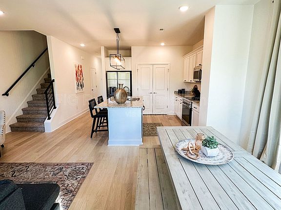 Beautiful newly constructed 3-bedroom, 2 1/2-bath, 1505 sq. ft. homes feature 9ft ceilings, LVP flooring, oversized windows, and a single-car garage. The open floor plan includes a kitchen with white shaker cabinets, granite countertops, a large island, pantry, and patio access. Upstairs the master suite offers double windows, accent wall, barn slider, double vanity, and walk-in shower, plus two more bedrooms, a half bath, and laundry room.