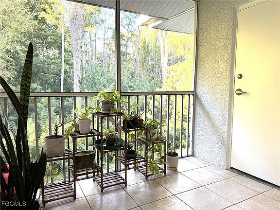 Very nice 2 bedroom, 2 bathroom condominium with updates to kitchen and bathrooms. This unit has tile flooring throughout. Enjoy the spacious great room with a soaring, vaulted ceiling. The kitchen has new (2024) white shaker cabinets, granite countertops and new (2024) stainless steel appliances. The oven has an air fryer feature. The large primary bedroom features an en-suite bathroom with dual sinks, new white shaker cabinets and granite counter top and walk-in shower, plus a large walk-in closet. The guest bedroom is in a private hallway with a pocket door for privacy, guest bathroom with new white shaker vanity cabinet, granite countertop and tub/shower combination. The guest hallway also has a laundry closet with newer (2024) stackable washer and dryer, plus a bonus closet. Enjoy the outdoors in the lighted, private, screened lanai just off of the kitchen. There is an outside storage closet in the lanai as well. The community features a swimming pool with lounge chairs, tables with chairs, an exercise room and playground area. All buildings have new tile roofs and fresh exterior paint with assessments paid. Now to location, location, location! This quiet community is tucked away from the main road and near to the new Lee Health hospital that is under construction and also the Top Golf plaza with loads of shopping, restaurants, entertainment, churches, banking, medical and so much more!