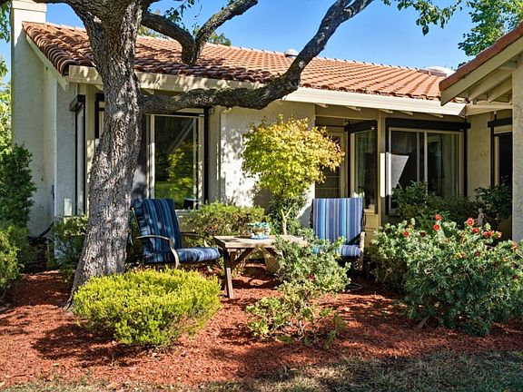 Hugely Desirable, much sought after, single level, end unit on lake, inside award winning Villages Golf & Country Club, by the beautiful Evergreen foothills. Upgraded kitchen, cherry stained cabinets, Alexandria Granite countertop & tastefully re-designed access to dining room. 5 custom, hand painted doors with story-telling scenes, leading to bedrooms, bathrooms & laundry rm. Stunning, enclosed patio with newer windows and sliding patio doors for fab indoor/outdoor feel. This glorious addition with coffee table & sofas one end & formal dining table the other, makes for a soothing daytime setting & a magnificent evening entertainment area. 3rd bedroom fitted with Wet Bar allows for great versatility, bedroom/office or fun cocktail area. Spacious living room features high ceiling & separate dining room has beautiful duel aspect windows. Primary bedroom has separate vanity area & walk-in closet, both bedrooms have full length, glass sliding doors leading to patio. HOA fees includes golf membership, Water, Sewer, Cable TV, Garbage, 18 & 9 hole golf course, 4 Swimming Pools, 6 Tennis Courts, Bocce & Pickleball Courts, Gym, Restaurant, Bistro, Library & US Post office, One resident must be 55. Similar property sold in August for $1,132,500, only 7 days on market. Don't miss this one!