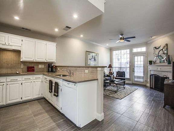 Welcome to the largest townhome of the 149 units in Copperfield, complete with a private backyard! Renovated in 2017, this home features an open, light-filled layout with a spacious living and dining area, an updated kitchen equipped with granite countertops, a tile backsplash, and a breakfast bar. The first floor includes a guest bedroom with a full bath and a convenient utility room. Transition from an all tile floor downstairs, to an all carpeted upstairs complete with a generous primary suite with two walk in closets and an en suite, spa inspired bath with separate tub and shower. There is also a second bedroom and an additional living area perfect for a home office, playroom, or media space, providing flexibility for your lifestyle. The back patio features a private deck and garden ideal for relaxing or entertaining and the two car garage offers plenty of storage space. Lease dues cover exterior upkeep, landscaping, and community pool access for low maintenance living. Located in Lake Highlands with easy access to highways, shopping, and dining! 2025-09-17