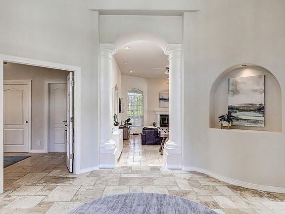 Welcome to Vineyard Estates 4 bed 3 bath beauty! This elegant home showcases gorgeous travertine floors, stylish quartz counters in the kitchen and baths & a neutral palette throughout. Natural light pours into the spacious living room w/ soaring ceilings and a cozy fireplace. Adjacent kitchen offers ample storage space updating lighting, SS appliances and newly installed marble backsplash. The generously sized master suite is a true retreat. Enjoy outdoor living from your covered patio out back and lush lawns in both front and back yards. HVAC system to include 2 heaters, & 2 AC units (refrigerated) replaced in 2023, One water heater replaced in 2023! Sought after schools- Double Eagle Desert Ridge & La Cueva! Take advantage of so many great shopping and dining options nearby.
