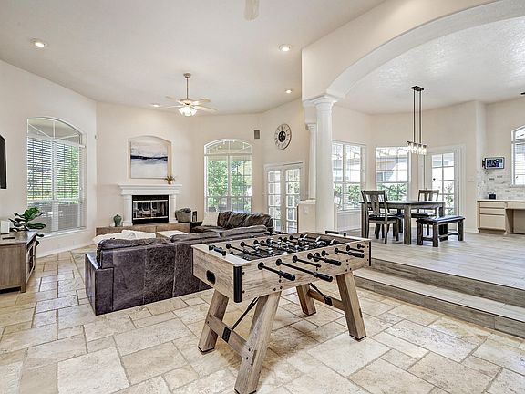 Cozy fireplaceLush lawnsTravertine floorsMaster suiteSoaring ceilingsQuartz countersAmple storage space