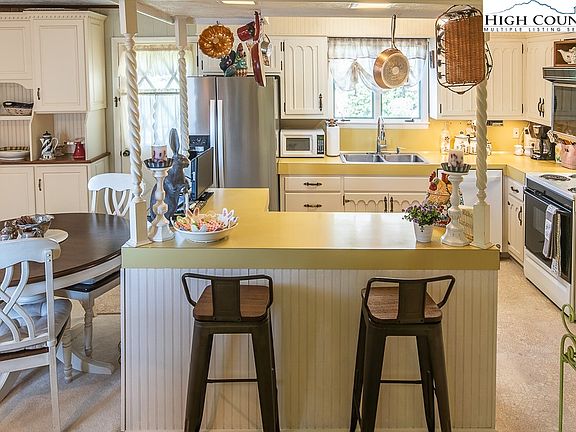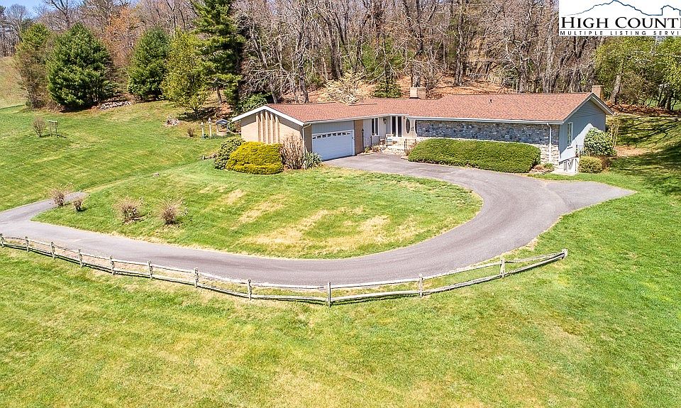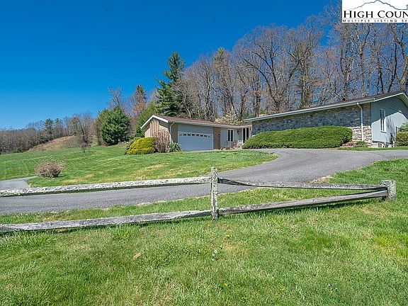 This beautiful home was custom built and has been owned by the same family. Quality built and lovingly cared for. Generous floorplan features a sizeable country style kitchen with den area, lots of cabinets and counters. Convenient 2 car garage adjoins the kitchen. Sunny dining room opens to the side deck. Beams accent this expansive yet cozy living room with brick fireplace and alcove shelves. All the bedrooms are on the main floor including the primary bedroom with bath ensuite. Lower level includes a huge room, currently used as a recreation room with pool table (including woodstove), 1/2 bath. Laundry room/mechanical room leads to the workshop. The workshop has a one car garage door convenient to bring in large equiptment or cars to work on. There is a bonus room just past the 1/2 bath which has an outside door to it. So much flex space and storage in this house! Minutes to the Blue Ridge Parkway and a short drive to either Boone or West Jefferson. There is no zoning, natural gas line runs along the road in front of the house. Roof replaced 2021, gutters with leaf guard, Anderson windows,