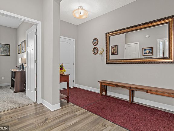 Indulge in total comfort at 8423 Yearling Drive, a pristine 2021-built single-story sanctuary with a finished basement, where every detail is crafted for effortless well-being. Nestled on a coveted corner lot with pond views, this move-in-ready gem in Woodbury's thriving 55129 delivers year-round bliss through its special dual-zone heating and air conditioning system-allowing independent humidity temperature control for the main level and basement, so you can cozy up downstairs while keeping the upstairs perfectly cool. No more compromises; just personalized, energy-efficient comfort that adapts to your lifestyle, saving on bills while maximizing relaxation. Step inside to an open-concept embrace, where a grand kitchen invites with gleaming quartz countertops, custom cabinetry, and premium stainless appliances-ideal for stress-free gatherings. Three main-level bedrooms, each with remote-controlled ceiling fans, offer seamless, accessible living that feels like a gentle hug. The finished lower level extends the serenity with a fourth bedroom, RC ceiling fans, and versatile spaces for unwinding or hosting, all under the watchful balance of the dual-zone HVAC. Complementing this is an integrated automatic humidity control system, ensuring crisp, breathable air without a hint of stuffiness. A new kitchenette allowing versatility for multi generational living space. Outside, melt into tranquility on a 3-season screened deck overlooking an expansive L-shaped cement patio (13’x38’+10’x12’slab), shaded by a low-maintenance 12’x36’ Temo-engineered patio cover (40 lb snow load). Red maple shade trees envelop the lot in a soothing, private retreat, blurring the lines between indoors and out. Paired with a Morton 30G water softener for silky-smooth showers and an energy-efficient 2021 build that whispers quiet efficiency, every moment here is about pure, unadulterated ease. With a 2-car garage and prime proximity to Bailey Lake trails, HealthEast Sports Center, top-rated schools (East Ridge High, Liberty Ridge Elementary), and Woodbury Lakes' upscale shopping and dining-plus a swift 20-minute commute to St. Paul/MSP-this home redefines total comfort in suburban harmony. Your oasis awaits-schedule your private tour today and feel the difference! Notable upgrades include ceiling mounted wifi amplifiers throughout home, dual-zone WiFi-controlled HVAC with whole home humidity management (April Aire humidifier and dehumidifier), a Solace electronic air filter (.3 Micron),piped returns in each room, 50 gallon water heater five remote-controlled ceiling fans, a fireplace, a pet fence, a water softener and many more!