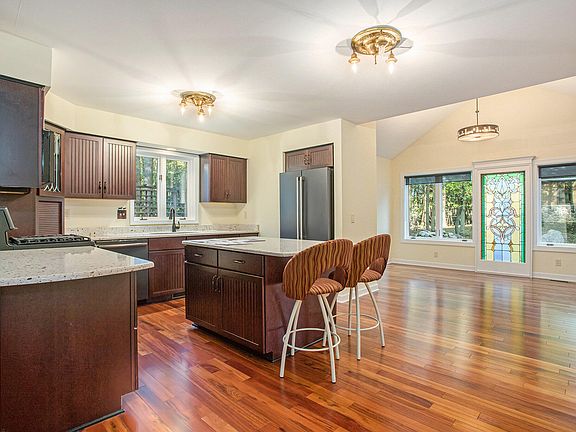 Impeccably designed custom 3-bedroom, 3-bath home nestled between Austin and West Lake in Portage. Set on 1.4 private acres, this three-story residence features stunning Brazilian tigerwood cherry floors, a gourmet kitchen with granite countertops, high-end stainless appliances, and custom cabinetry. Intricate stained glass from the 1863 Marlborough House and original light fixtures add timeless charm. The spacious primary suite and second-floor living room open to a wraparound deck with scenic views, while skylights fill the home with natural light. Enjoy a third-floor bonus room with panoramic vistas, fresh interior paint, a newer roof, and updated mechanicals. With parking for four and endless outdoor potential, this home beautifully combines craftsmanship, comfort, and tranquility.