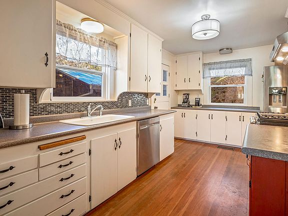 Electric gateRaised garden bedsMarble countersSolid wood cabinetryLots of storageCharming corner buffetDutch door