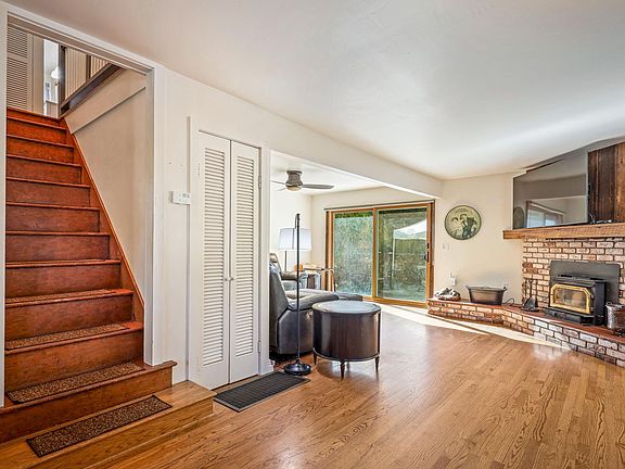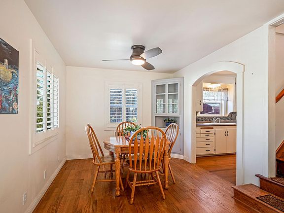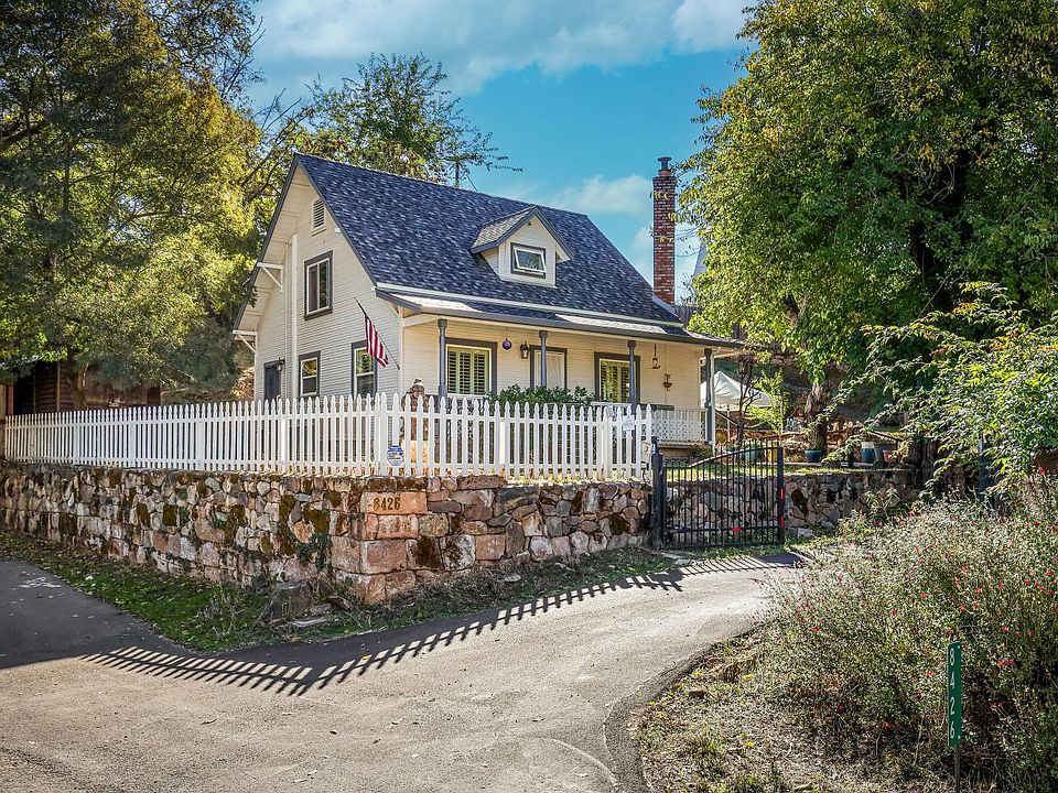 This charming home sits in the heart of downtown Mokelumne Hill. The living room is large with a slider out to the patio, a wood stove insert with brick surround and hearth, plantation shutters and beautiful, real hardwood floors, connecting the dining room with a charming corner buffet. The kitchen is updated and functional with outside access through a Dutch door and lots of storage and old hardwood floors and solid wood cabinetry. There's a full bath downstairs as well as laundry. Upstairs continues the beautiful old hardwood throughout with an updated bath with double sinks, marble counters and shower. The central heat and air have 2 zones, upstairs and down, and a evaporative cooler keeps the house cool without running the AC. There are lots of storage and cubbies upstairs. The property consists of 2 lots, all fenced with an electric gate & paved driveway. There's a 2-car garage, RV cover with full hookups, and a shed with ample storage. The rock wall patio is lovely with an area ready for a hot tub with electricity and water. The grounds include Peach, persimmon, fig, orange, Meyer lemon trees and raised garden beds. Several additional sheds on site.