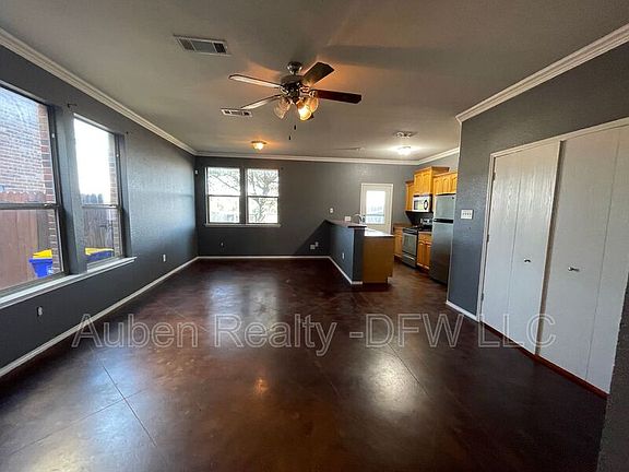 Well-Maintained two story Duplex for rent in White Settlement. 1394 Sq Ft. The property offers an open floor plan with a large living room. The kitchen features stainless steel appliances, a breakfast bar, and an adjacent dining area. Etched concrete flooring for easy maintenance in living, dining, kitchen, entry and half bath. All bedrooms and 2 full baths are located upstairs. Large master bedroom with walk-in closet and private bath. Additional bedrooms are spacious with good closet space. Private fenced back yard. 1 car attached garage. Separate utility room. Pets welcome! FRESH paint! NEW Carpet