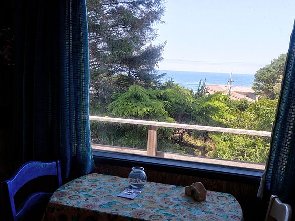 Cabin in the woods with Ocean Views framed by the trees. This is the perfect Fixer-Upper and is in need of new roof and deck immediately. Great opportunity to renovate and remodel, or start over in great location with great Ocean Views! Perfect as a beach cabin get-away with a very private yard. Use your imagination and make it your own.
