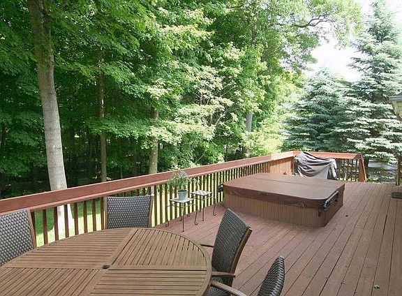 Quiet Cul-de-sac. Private wooded lot with room to play. New carpet, enamelled woodwork thru-out. Hardwood floors, walk-in pantry. Huge owner's suite, four bedrooms up. Large deck with 5 person hot tub. (Internet 6335414)