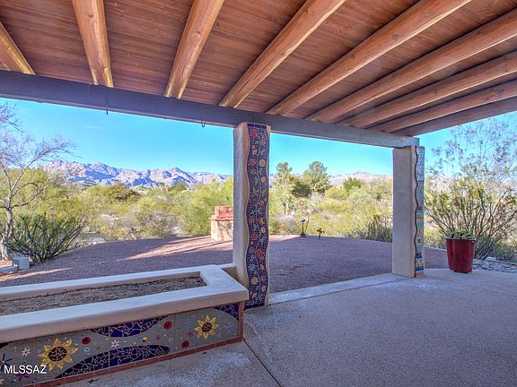 Privacy and views! Enter your new home though a beautiful courtyard into a living room with big windows looking at the Catalina and Rincon Mountains. Split bedroom plan with updated master bath. Spacious living throughout allows for wonderful family living and great areas for entertaining. More entertaining space under the covered patio and open side courtyard with beautiful custom tile work. Retractable shades on east side of home add extra shaded areas when desired. Updated Kitchen with everything you could want and views to look at all day long. Don't forget the 22 x 14 (308SF) unattached studio with a mini-split that is perfect for so many purposes. Built in storage in both studio and garage.