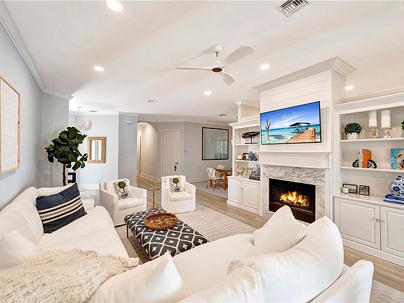 This stunning remodeled villa offers high ceilings, crown molding, and shiplap details. Coastal flooring and plantation shutters throughout the 2477 AC SF with 3 beds and 2.5 beautifully updated baths. The living room features a gas fireplace and French doors to the lanai with automatic retractable screen. Resort-style amenities include clubhouse, 4 swimming pools, 4 Har-Tru tennis courts, and a gym. Located in Baytree, a gorgeous gated ocean-to-river community under a canopy of old oak trees. HOA incl. Master Insurance, landscaping, & exterior maint.
