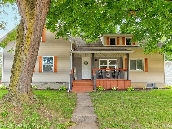 A stunning blend of historic charm and modern upgrades! Built in 1890 and fully renovated in 2025, this corner-lot gem is conveniently located within walking distance to shops and restaurants. The main floor features a welcoming entryway, open kitchen-dining combo with cathedral ceilings (formerly the attic), living room, bedroom, two full baths, and laundry. Upstairs boasts a large, flexible space that was once two bedrooms—easily converted back if desired. Extensive updates include all new electrical, drywall, paint, flooring, appliances, doors, light fixtures, some windows, plumbing, bathroom fixtures, vinyl siding, gutters, front porch and railing, landscaping, and more. The home comes with all brand-new, energy-efficient appliances. A perfect blend of character and modern convenience!