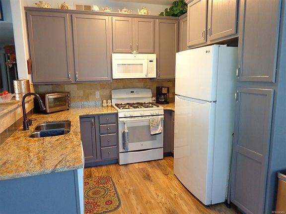 Immaculate ground level, end unit in Canyon Ranch with mountain views. Open kitchen with 42 inch cabinets, newer appliances, granite counters and eating space. Cozy living room with gas fireplace and access to the patio. Two bedrooms including spacious master with private bathroom and huge walk-in closet. One car detached garage with storage cabinets. Brand new furnace and hot water heater. Newer A/C compressor (2016), flooring (2014), appliances (2014), granite counters (2014), Aside windows (2015, with 10 year transferable warranty). Plantation shutters in both bedrooms. Quiet community with pool and fitness facility. Access to all four Highlands Ranch Rec Centers. Close to E-470, I25 and DTC. Move right in!