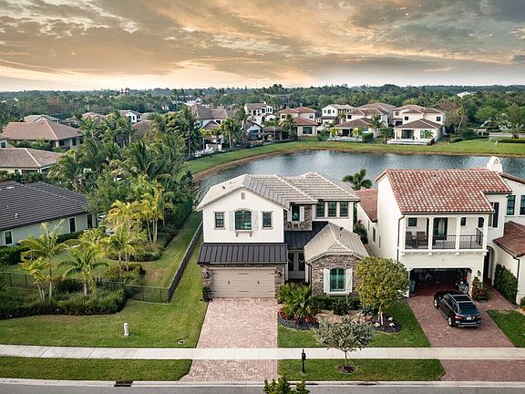 Nestled in the heart of the exclusive Palm Meadows Estates, this stunning 4-bedroom, 4.5-bathroom luxury home is where elegance meets comfort. The expansive 11 foot ceilings throughout the home create an airy and spacious atmosphere. The first floor features exquisite tile flooring that transitions seamlessly to plush carpeting on the second floor. Ascend the sleek wooden staircase, complete with modern stainless steel railing, to explore the upper level. The gourmet chef's kitchen features top-of-the-line stainless steel appliances, gas appliances, and quartz countertops with a stylish backsplash. Each of the bathrooms also boasts quartz countertops, adding a luxurious touch to your daily routine. The master bedroom, located on the first floor, offers a serene retreat with ample privacy. A guest suite also resides on this level, while the two remaining bedrooms upstairs provide generous space for family and visitors. All windows and doors are equipped with impact glass throughout, ensuring peace of mind and added protection from the elements. The home is designed for convenience and security, featuring extra garage storage with ceiling-mounted racks and a pulley system for bicycles. The upgraded electrical system includes a 220-amp electric car charger, and the back patio is enhanced with phantom screens. A whole-house generator ensures you're never left in the dark. The upgraded design features, including a chandelier, wood beams, and custom window coverings, add a touch of elegance and sophistication that is sure to impress. This luxury home is truly a gem, combining modern amenities with classic elegance in a stunning waterfront setting with luscious tropical landscaping and landscape lighting. Don't miss out on this once-in-a-lifetime opportunity to own your dream home! The community boasts a beautiful clubhouse, barbecue area, resort style pool, pickle ball courts, tennis courts, indoor basketball court, gym and party room. Live where others vacation!