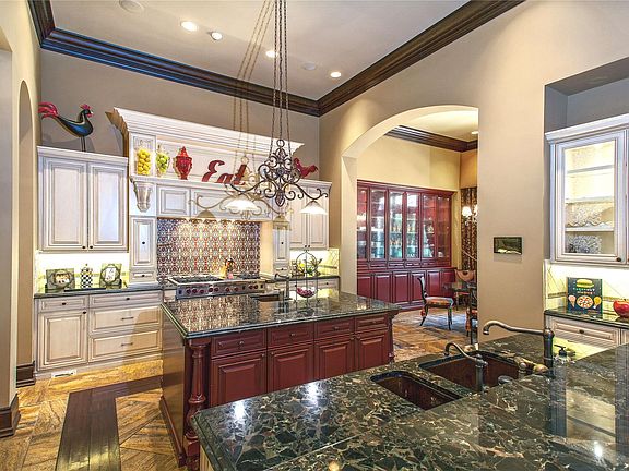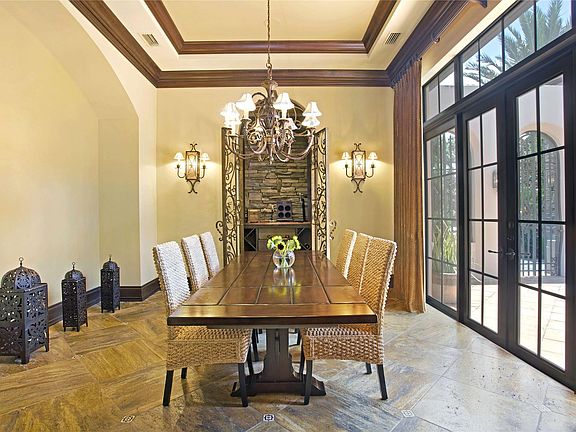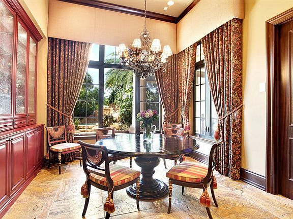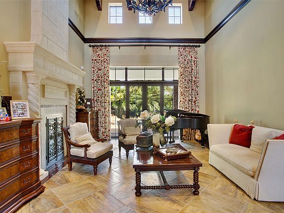 One of Mizner Country Club's finest estates is found in this lakefront paradise on an expansive point-like property located close to the world-class private club facilities of this distinguished club community. Peacefully set on the lake at the end of a cul-de-sac, this custom-built five-bedroom residence is themed with relaxed Santa Barbara style to create the ultimate environment for comfortably elegant indoor/outdoor living and entertaining, with a grand total of 10,647+/- square feet.